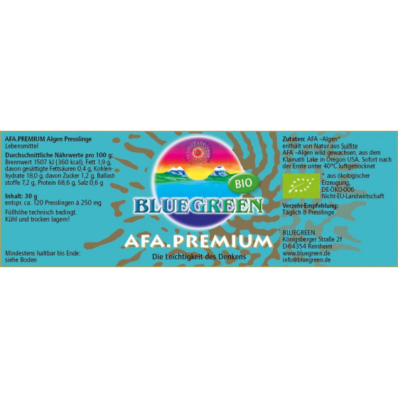 AFA BASIC BIO Presslinge AFA Algen in bester BIO Qualität Schonend in nur 2 bis 3 Minuten unter 40° C getrocknet Herkunftsland...