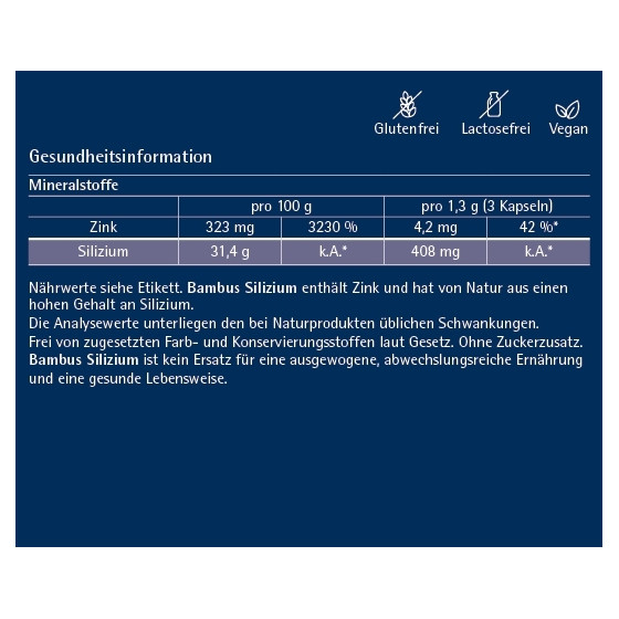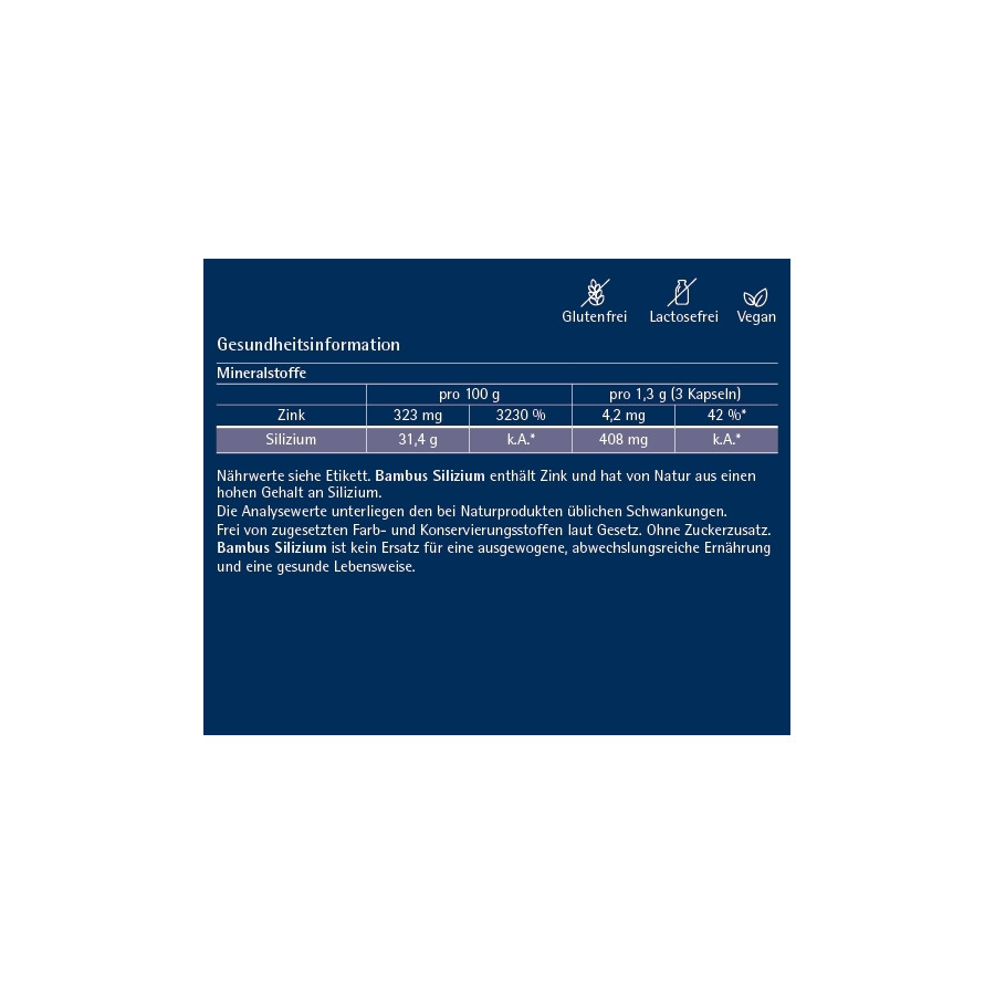 ist Minerals Bambus-Silizium mit Zink (42%*) neben der Stärkung von Knochen, Haut, Haaren und Nägeln unter anderem wichtig für...