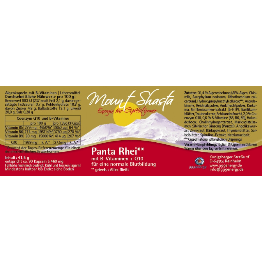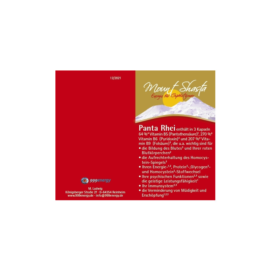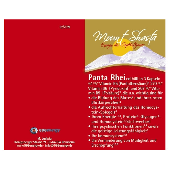 Während Mount Shasta Panta Rhei mit den Vitaminen B5 (Panthothensäure, 64%*), B6 (Pyridoxin, 270%*) und B9 (Folsäure, 207%*) bei Ihnen u.a. für...