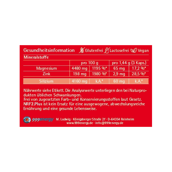Drittens sei der Zusatz von Mishri und Langer Pfeffer hervorgehoben, die die Verwertung und Verstoffwechselung der o. g. Substanzen sehr günstig beeinflussen können. Mount Shasta NRF2.PLUS unterstützt mit Magnesium und Zink insbesondere die kognitiven Funktionen (ganzheitliches Denken), Nerven und Psyche.